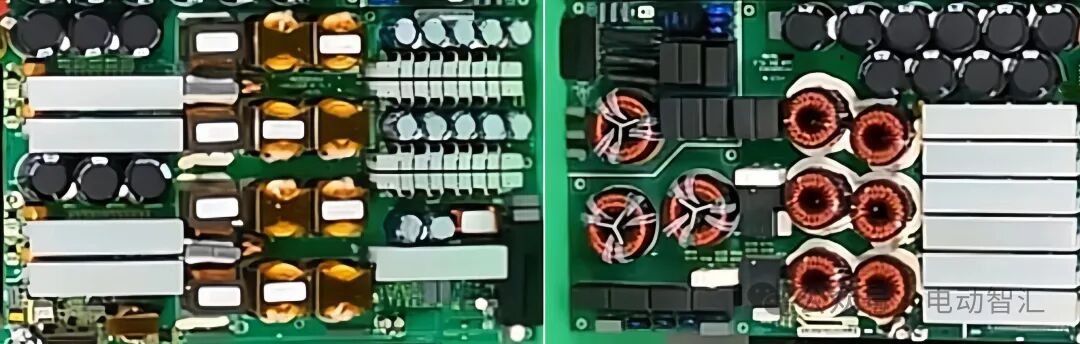 无论直流充电桩的功率大小如何,其内部核心架构都遵循模块化设计,由功能明确的单元模块构成。下图所示的电路板便是充电桩模块,
